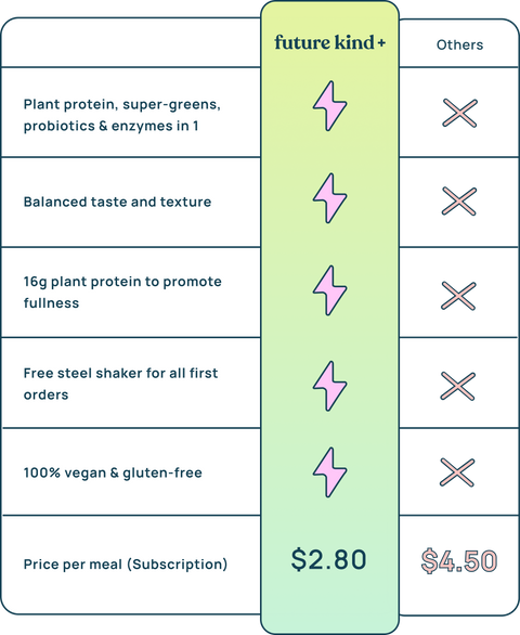 I've been drinking Future Kind's Meal Replacement Shake (Stevia Free) every single day for over 8 months and I LOVE IT! I blend it with cold water and a frozen banana and it's *chefs kiss*! This shake is a non-negotiable part of my day/life and I look forward to it every single morning! I feel incredible and it keeps me full for hours which is so important as I am a distance runner, full-time professional, and student! I never want to know life without Future Kind & their products!