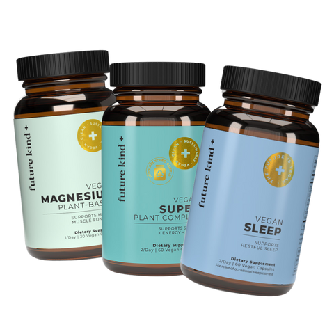 Future Kind is the first supplement of its kind to offer just the essentials: B12, D3 and Omega-3, in the form and dose that's ideal for vegans.